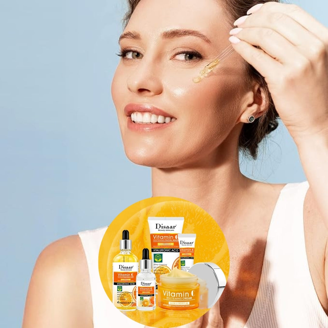 مجموعة العناية بالوجه العضوية 100% بفيتامين C - سر جمالك الطبيعي وشبابك الأبدي!